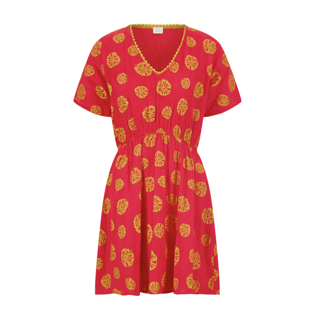Veronique Women's Dress Coral Dal Block Print