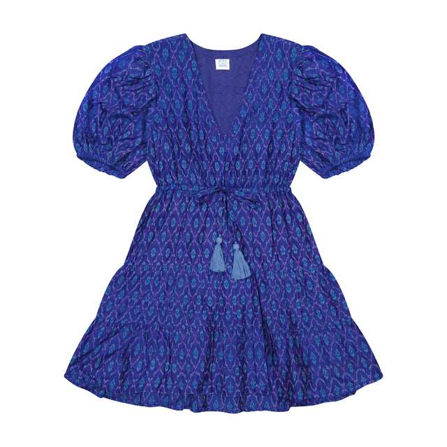 Eva Women's Ruffle Sundress Gold Blue Ikat