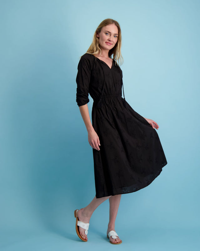 Solange Women's Popover Dress Black Eyelet (midi length)