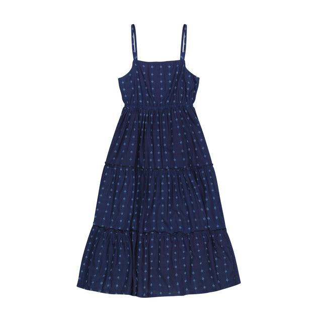 Emilie Women's Maxi Strappy Sundress Navy Turquoise Swiss Dot