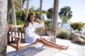 Effortless elegance meets resort style. This après-beach essential features romantic balloon sleeves and a flattering deep V-neckline adorned with delicate ladder stitch detailing. Thigh-high side slits provide movement and breathability, while the adjustable back tie cinches your waist for a refined silhouette. Crafted from double cotton for comfort and durability, this versatile piece transitions seamlessly from poolside to dinner.