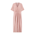 Elevate your wardrobe with this refined kaftan, crafted from ultra-soft double cotton gauze. A shirred waist creates flattering definition while deep front pockets offer practical elegance. The front slit ensures graceful movement, and generously cut dolman sleeves provide a relaxed, sophisticated silhouette. Perfect for warm weather entertaining or leisurely days at home.
