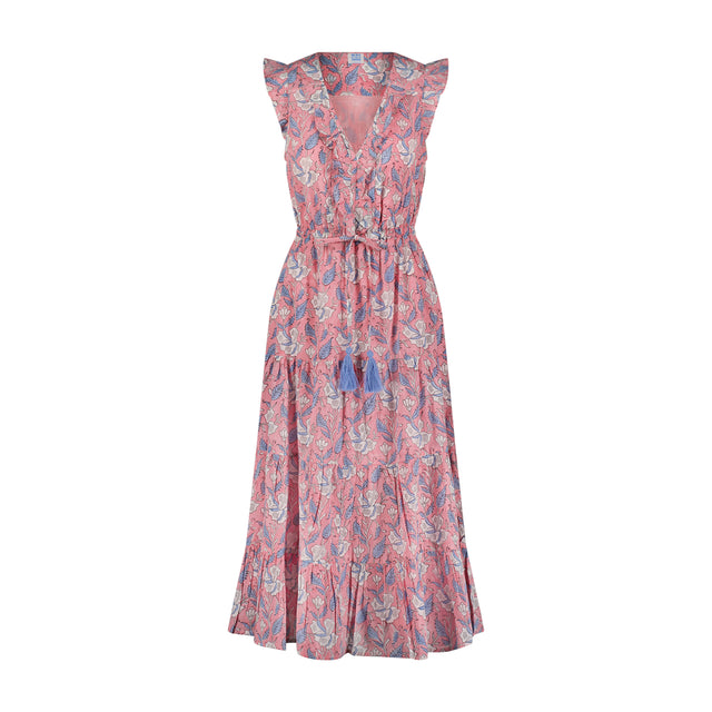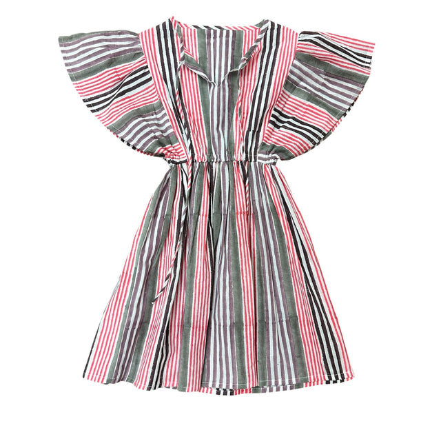 Margaux Flutter Sleeve Dress Pink Multi Stripe