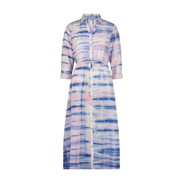 Anais Women's Button Front Shirtdress Rose Lapis Blue Shibori