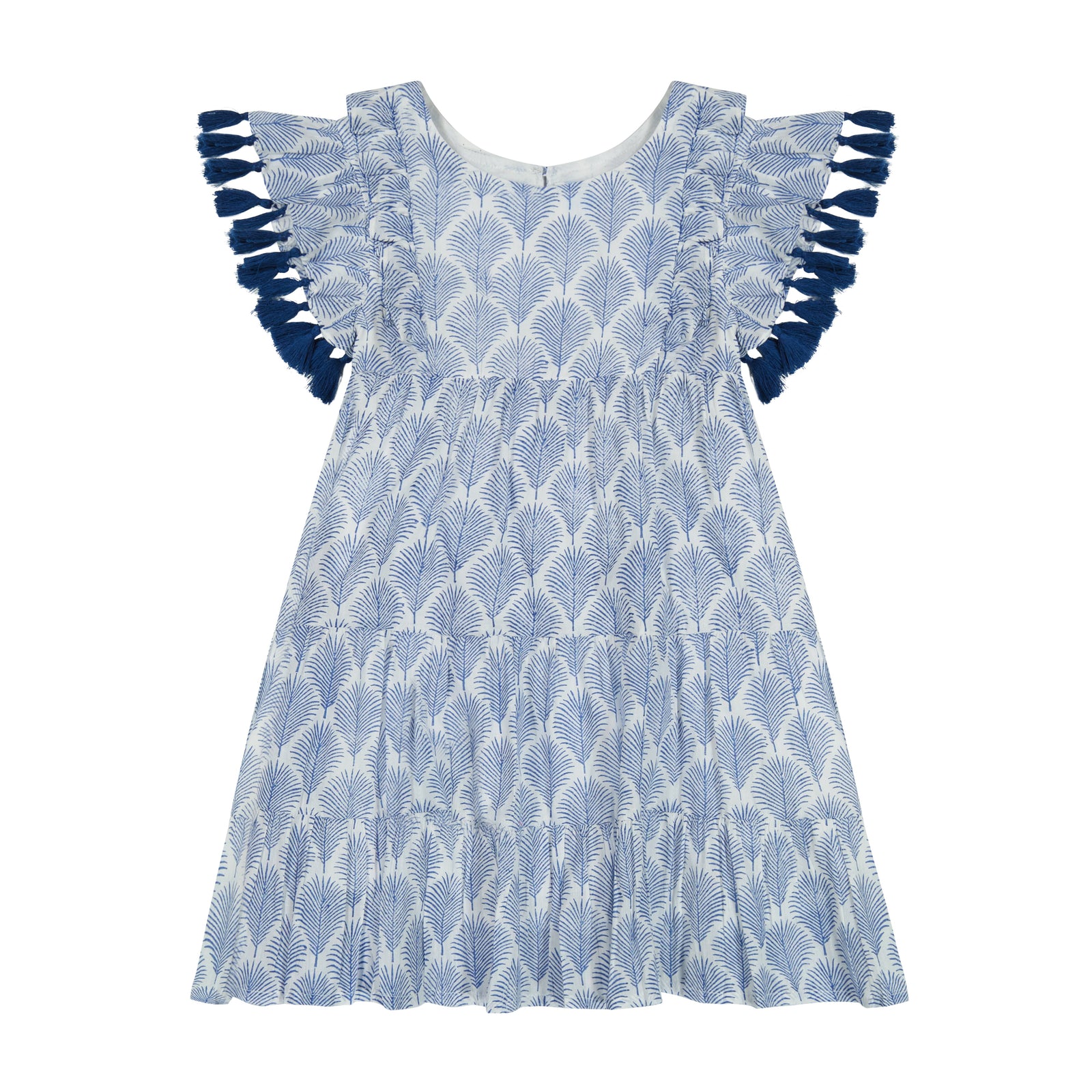 Sophie Girl's Tassel Dress Navy Turquoise Swiss Dot