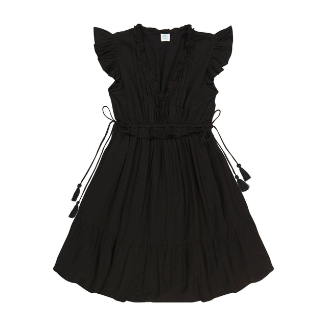 Brigitte Women's Ruffle Neck Shirtdress Black Cotton Gauze