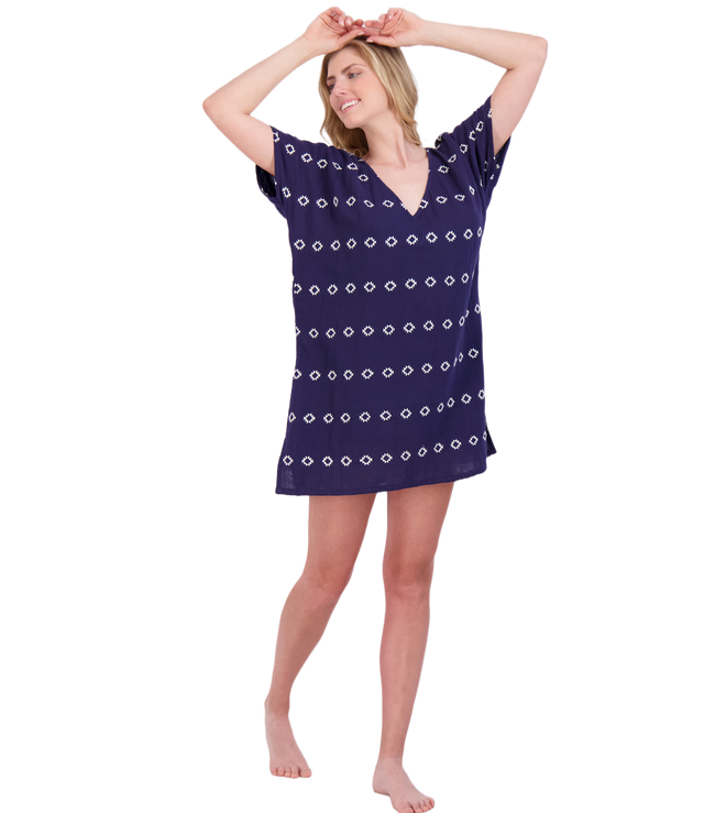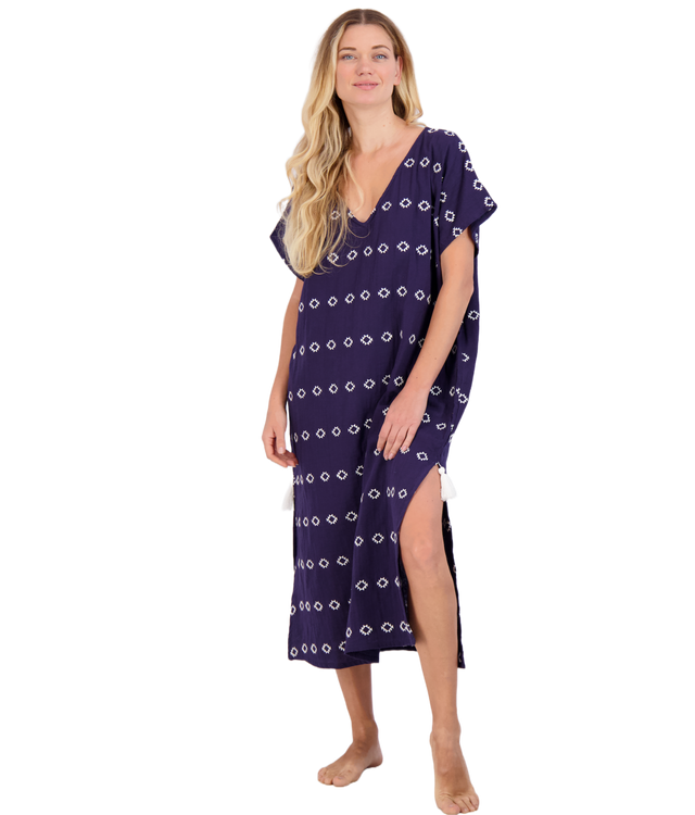 Capucine Women's Mini Caftan Dress Navy Embroidery