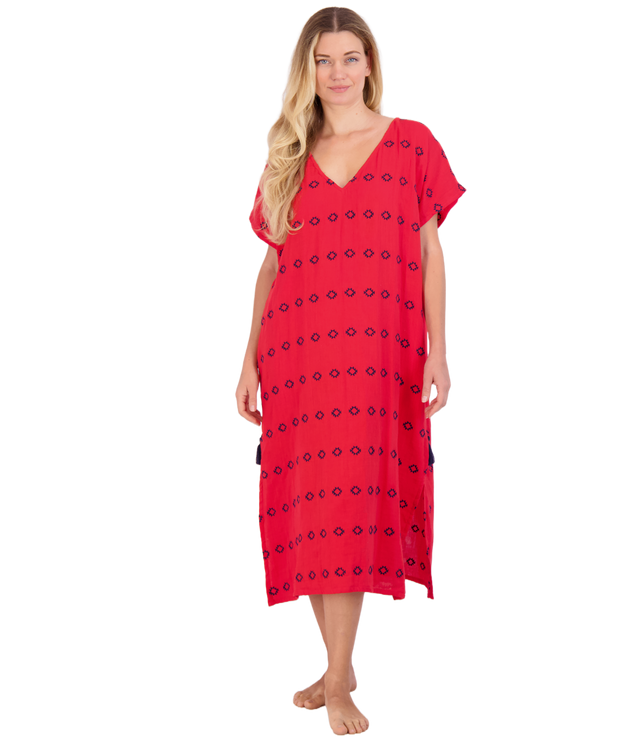 Capucine Women's Maxi Caftan Dress Red Embroidery