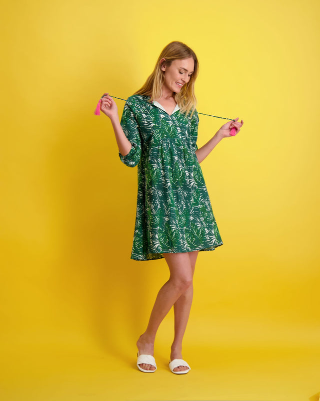 Lea Women's Popover Dress Emerald Palm