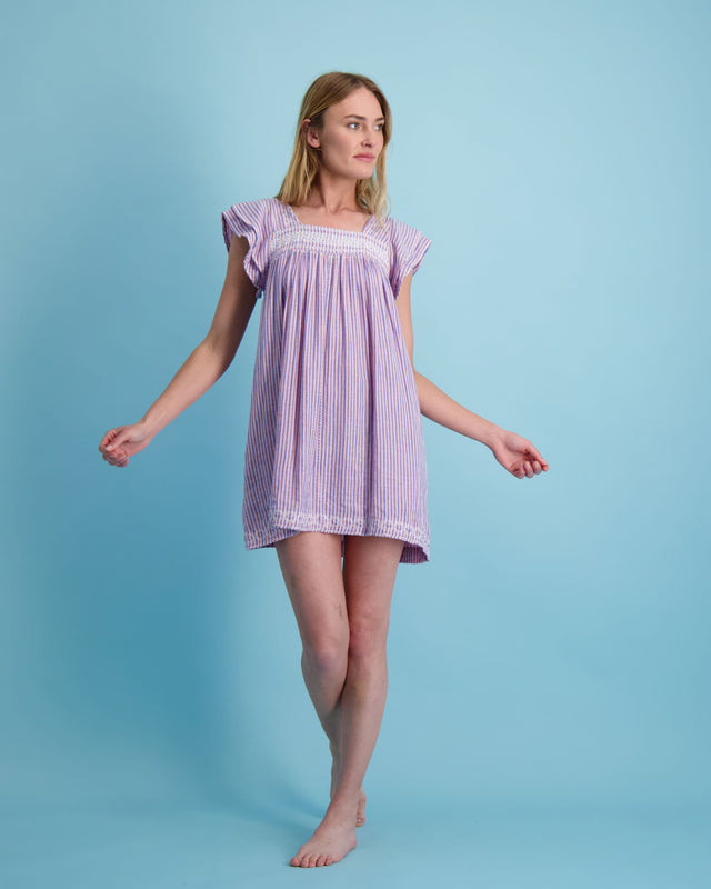 Mini Sandrine Women's Dress Pink Blue Stripe