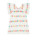 Get ready for some beach fun with the Mini Capucine Girl's Caftan! This boho chic cover up doubles as a playful beach dress, featuring whimsical embroidery, elasticized neck and roomy flutter sleeves. Perfect for a carefree and stylish look.  100% cotton gauze.