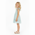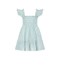 Indulge your little girl in the luxury of our Mini Paloma Dress, a statement piece featuring delicate smocked flutter sleeves and a beautifully smocked bodice. The ruffle twirly skirt adds a playful touch. 100% cotton.