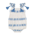 Zoe Baby Romper White Blue Embroidery